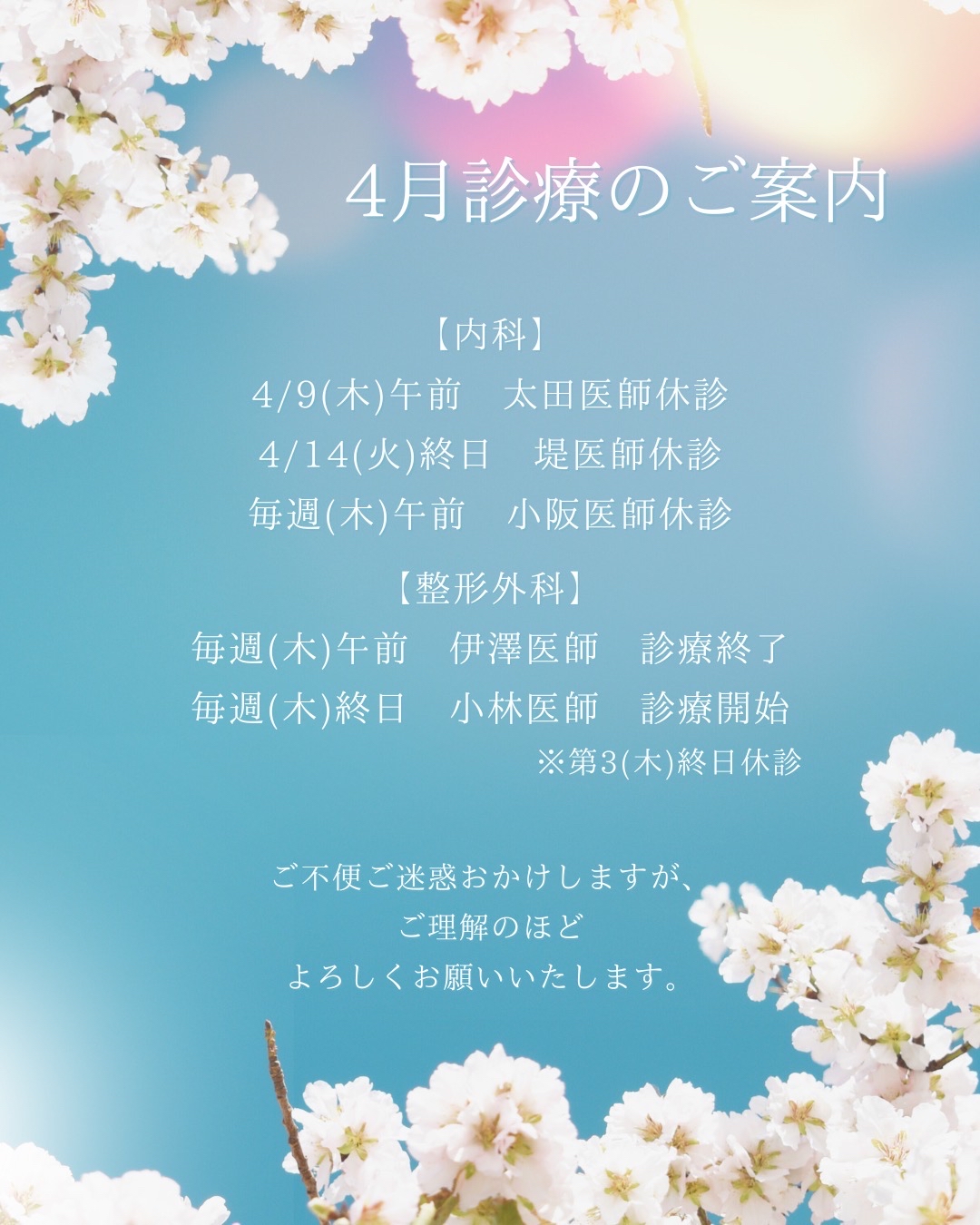 休診情報 2026.03.19 令和8年4月 休診・担当医変更のお知らせ